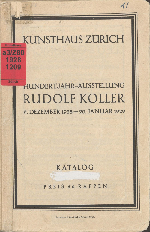 Hundertjahr-Ausstellung Rudolf Koller : Kunsthaus Zürich, 9. Dezember 1928 - 20. Januar 1929 : Katalog