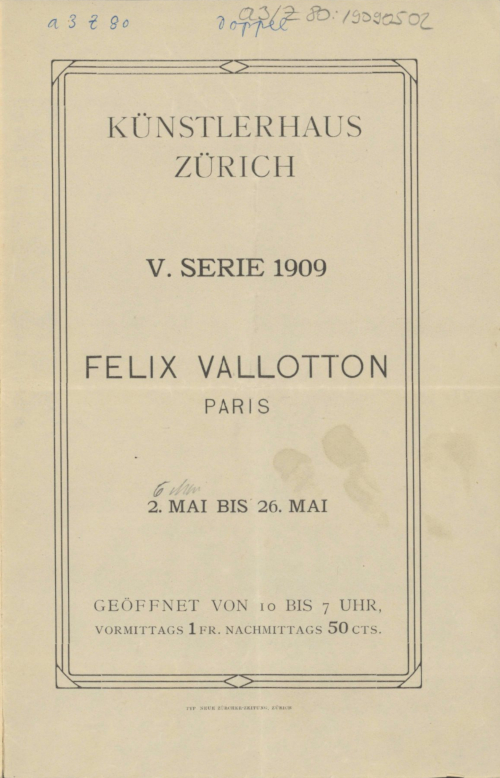 Felix Vallotton, Paris : V. Serie 1909, 2. Mai bis 28. Mai / Künstlerhaus Zürich