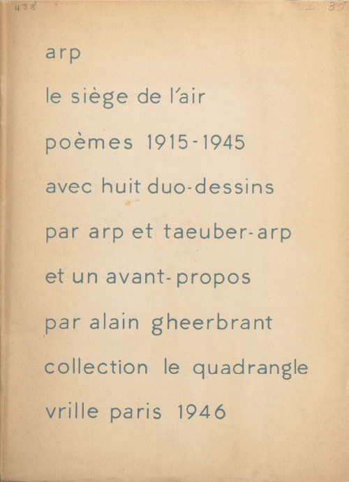 Le siège de l'air : poèmes 1915-1945 / Arp ; avec huit duo-dessins par Arp et Taeuber-Arp et un avant-propos par Alain Gheerbrant [Buch]