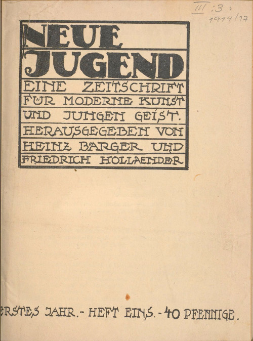 Heft 1: März 1914, Erstes Jahr, Heft 2: April 1914, Erstes Jahr, Heft 3: Juni 1914, Erstes Jahr, Heft 4: Juli 1914, Erstes Jahr, 5. Heft: August 1914, Erstes Jahr, Kriegs-Sonderausgabe Erstes Heft [Dez. 1914], 7. Heft: Juli, Erstes Jahr, [1916], 8. Heft: August, Erstes Jahr, [1916], 9. Heft, September, Erstes Jahr, [1916], 10. Heft, Oktober, Erstes Jahr, [1916], 11. und 12. Heft, Erstes Jahr, Februar-März 1917 |