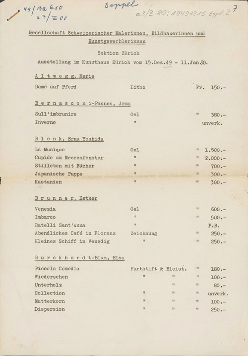 Gesellschaft Schweizerischer Malerinnen, Bildhauerinnen und Kunstgewerblerinnen / Sektion Zürich / Ausstellung