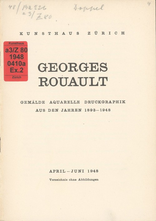 Georges Rouault : Gemälde, Aquarelle, Druckgraphik aus den Jahren 1893 - 1948 : April bis Juni 1948 / Kunsthaus Zürich