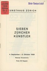 Sieben Zürcher Künstler : 4. September - 2. Oktober 1938 : kleines Verzeichnis / Kunsthaus Zürich