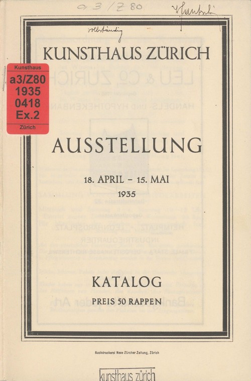 Ausstellungskatalog / Kunsthaus Zürich / 18.04.1935-15.05.1935 / Zürich