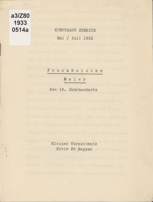 Ausstellungskatalog / Kunsthaus Zürich / 05.1933-07.1933 / Zürich