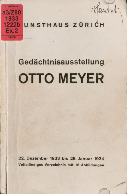 Gedächtnisausstellung Otto Meyer : 22. Dezember 1933 bis 28. Januar 1934 : Vollständiges Verzeichnis mit 16 Abbildungen / Kunsthaus Zürich