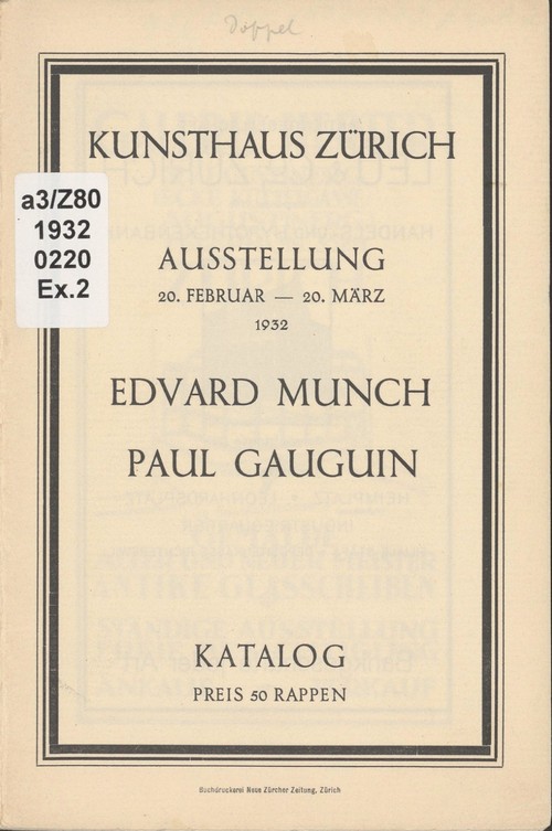 Edvard Munch, Paul Gauguin : Ausstellung: 20. Februar - 20. März 1932 : Katalog / Kunsthaus Zürich