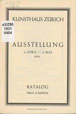 Ausstellungskatalog / Kunsthaus Zürich / 04.04.1931-03.05.1931 / Zürich