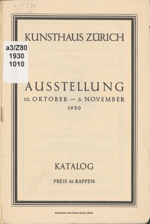Ausstellungskatalog / Kunsthaus Zürich / 10.10.1930-05.11.1930 / Zürich