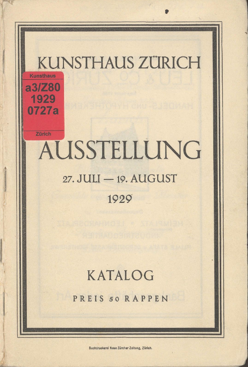 Ausstellungskatalog / Kunsthaus Zürich / 27.07.1929-19.08.1929 / Zürich