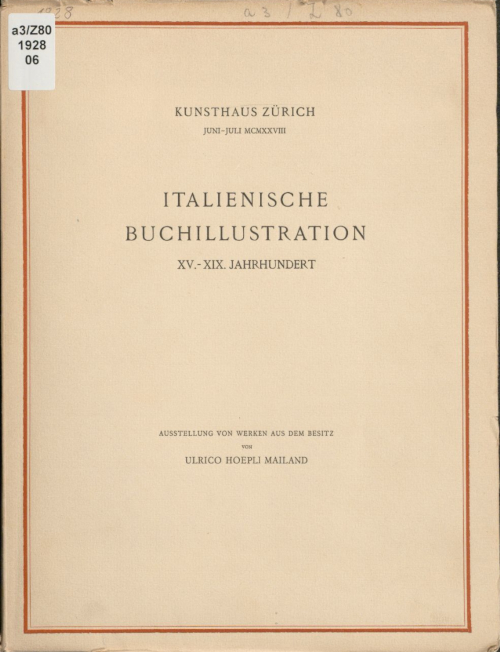 Italienische Buchillustration : XV. - XIX. Jahrhundert : Ausstellung von Werken aus dem Besitz von Ulrico Hoepli Mailand : Kunsthaus Zürich, Juni - Juli MCMXXVIII