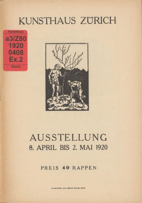 Ausstellung : Kunsthaus Zürich, 8. April bis 2. Mai 1920