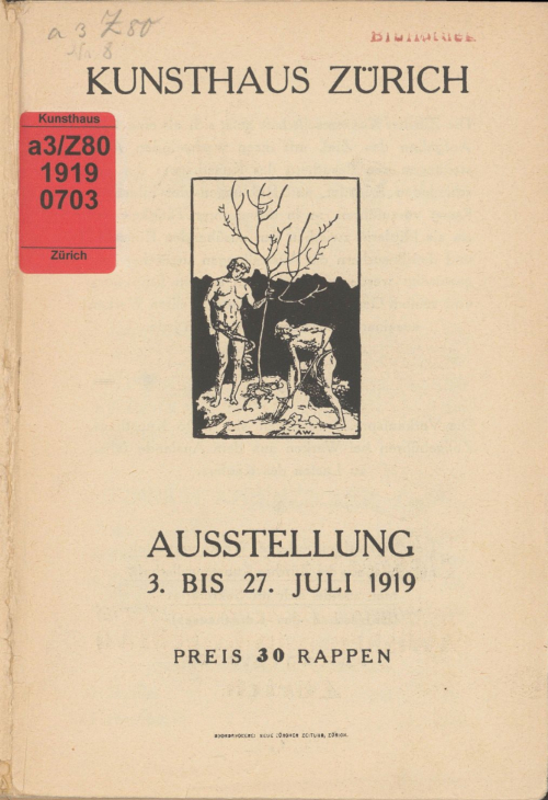 Ausstellungskatalog / Kunsthaus Zürich / 03.07.1919-27.07.1919 / Zürich