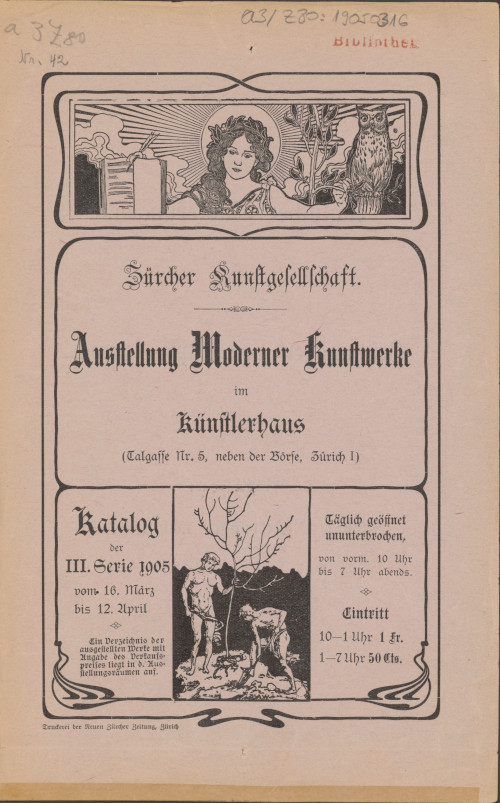 Ausstellung moderner Kunstwerke: im Künstlerhaus (Thalgasse Nr. 5, neben der Börse, Zürich 1) : Katalog der III. Serie 1905 vom 16. März bis 12. April
