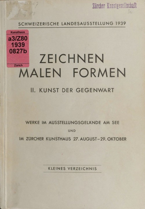Zeichnen, Malen, Formen : Schweizerische Landesausstellung 1939 . 2 . Kunst der Gegenwart : Werke im Ausstellungsgelände am See und im Zürcher Kunsthaus, 27. August-29. Oktober