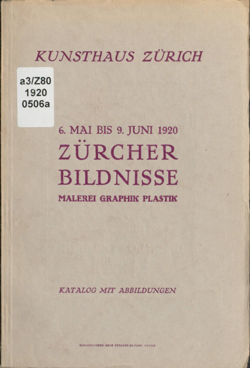 Zürcher Bildnisse : Malerei, Grafik, Plastik : Kunsthaus Zürich, 6. Mai bis 9. Juni 1920 : Katalog mit Abbildungen